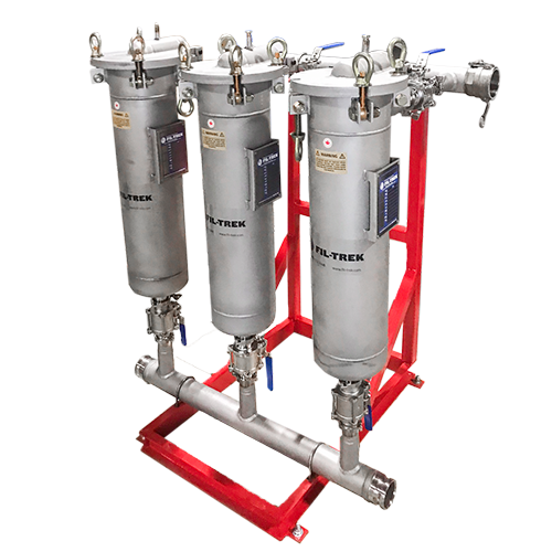 The Fil-Trek PTL Series is a parallel top-entry bag filter system designed for either simultaneous or staged filtration. With dual housings mounted in parallel, this system provides flexibility to run both vessels together or in series for enhanced filtration performance.